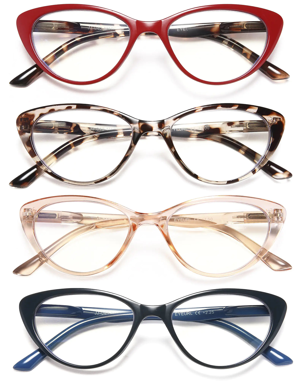Cat Eye Fashion Reading Glasses 4-Piece Set - Blue Light Filter - 4pairs / 0.0 x