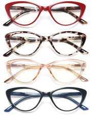 Cat Eye Fashion Reading Glasses 4-Piece Set - Blue Light Filter
